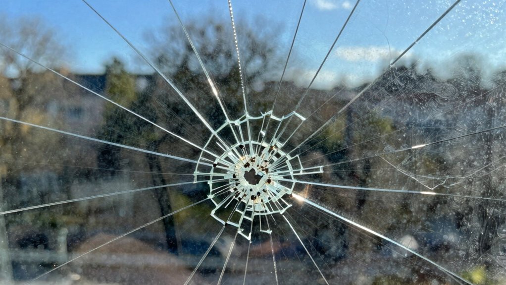 Yes, environmental factors can cause glass streaks. When environmental buildup occurs, dust, pollen, and dirt settle on your glass surfaces. Atmospheric moisture can also contribute to streaks by creating a thin film of water that attracts more dirt or dries unevenly. These elements combine to leave streaks or smudges on your glass, especially if you don’t clean regularly or if humidity levels fluctuate, making it harder to keep your glass crystal clear.