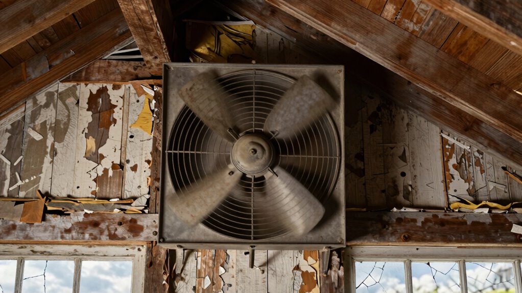Attic fans are often thought of as a simple solution to improve home ventilation, but they can also create problems if not installed or maintained properly. When functioning correctly, they help reduce indoor temperatures, cut down on cooling costs, and improve air circulation. However, if you don’t consider factors like energy efficiency, they might end up costing you more than they save. Attic fans, especially older or poorly designed models, can consume significant amounts of electricity, pushing up your energy bills instead of lowering them. If you’re not careful, their energy use can outweigh the benefits of better ventilation, making them an inefficient addition to your home. To avoid wasting energy, it’s essential to select an attic fan that’s appropriately sized for your space and has energy-efficient features like variable speed controls or energy star ratings. Proper installation also plays a critical role in guaranteeing maximum energy efficiency. If the fan isn’t sealed correctly or if it’s installed without considering the overall attic insulation, you risk creating air leaks that allow conditioned air to escape, defeating the purpose of ventilating in the first place. Additionally, choosing a model with energy-efficient features can significantly reduce ongoing electrical costs. Noise pollution is another common issue linked to attic fans. When installed or maintained poorly, these fans can become loud and disruptive, disturbing your peace and quiet. You might notice a constant humming or buzzing sound that becomes especially noticeable at night or during quiet hours. This noise can interfere with sleep, work-from-home routines, or simply enjoying a peaceful home environment. Sometimes, the noise results from old or malfunctioning motors, loose mounting brackets, or worn-out blades. Regular maintenance, such as cleaning and tightening components, can help reduce noise levels. Upgrading to a quieter model can also make a significant difference, especially if noise pollution is a concern for you or your family. While attic fans are effective at solving certain problems—like preventing heat buildup and reducing cooling costs—they can create new challenges if not properly chosen, installed, or maintained. The key lies in balancing the benefits of improved ventilation with the potential drawbacks, particularly regarding energy consumption and noise. Proper installation and maintenance are crucial to ensure optimal performance and longevity of your attic fan. When you pay attention to these factors, you guarantee that your attic fan works as a helpful tool rather than a source of new problems. A comprehensive understanding of attic fan functionality and limitations can help homeowners make informed decisions that maximize benefits while minimizing issues. Being aware of the energy consumption involved also allows for better planning and selection of models that are more sustainable and cost-effective. It’s also important to consider proper ventilation strategies to complement attic fans and ensure overall attic health. Proper installation, regular maintenance, and selecting an energy-efficient, quiet model will help you maximize the advantages while minimizing the issues. This way, you get the ventilation benefits you want without the unintended consequences of higher energy bills or an annoying noise environment.
