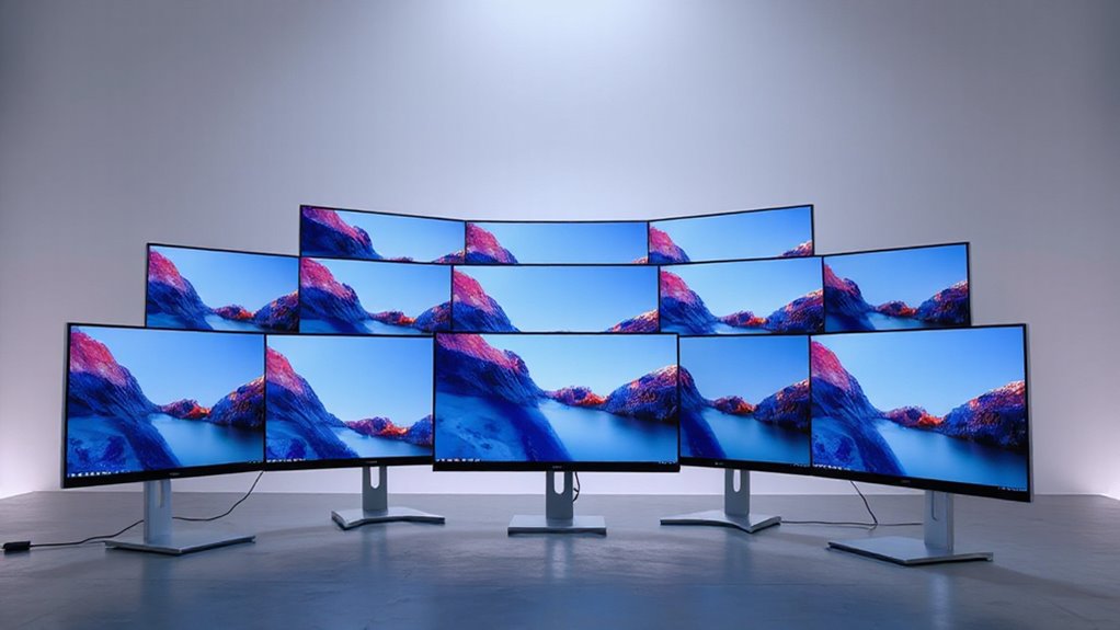 Curvature acts like a gentle hug around your field of view, making multi-monitor setups feel more cohesive. It reduces the blind spots and minimizes the need for head movement, creating a seamless visual flow. I find that curved screens blend together better, giving a more immersive experience and reducing eye strain. When set up correctly, they transform multiple displays into one unified workspace, almost like a panoramic window into your digital world.