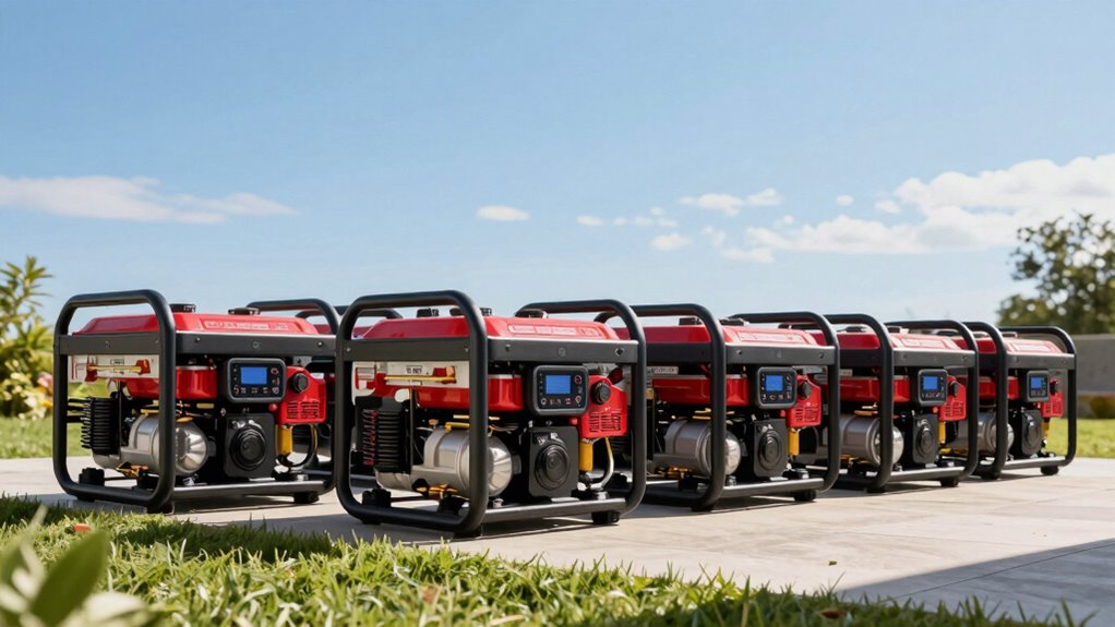 Ever wonder if size and weight vary among top dual fuel inverter generators? They do, quite a bit. I’ve noticed that larger models often pack more power but tend to be heavier and bulkier, making them less portable. Smaller units are lightweight and easy to carry, perfect for camping or tailgating. So, it really depends on what you need—power or portability—before choosing the right size for your situation.