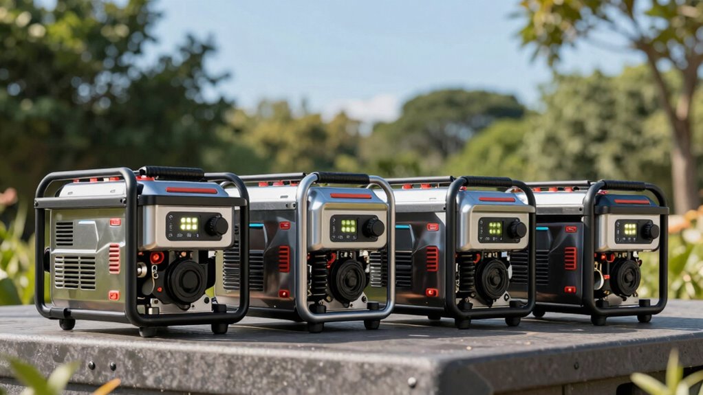 When selecting a 4000-watt inverter generator, prioritizing safety features and useful extras can make a significant difference in your experience. Essential safety features like automatic low oil shutdown and carbon monoxide sensors protect both the generator and users from potential damage or harm. Additional features such as overload protection and automatic shutoff help safeguard sensitive electronics and prevent generator damage. A digital display that shows voltage, runtime, and fuel levels enhances safety by keeping you informed of system status. Parallel capability allows you to connect multiple units for increased power, but requires proper safety checks. Noise reduction technology and safety alerts create a safer, more comfortable environment, especially in residential or enclosed spaces. These features make your generator both safer and more convenient to operate.