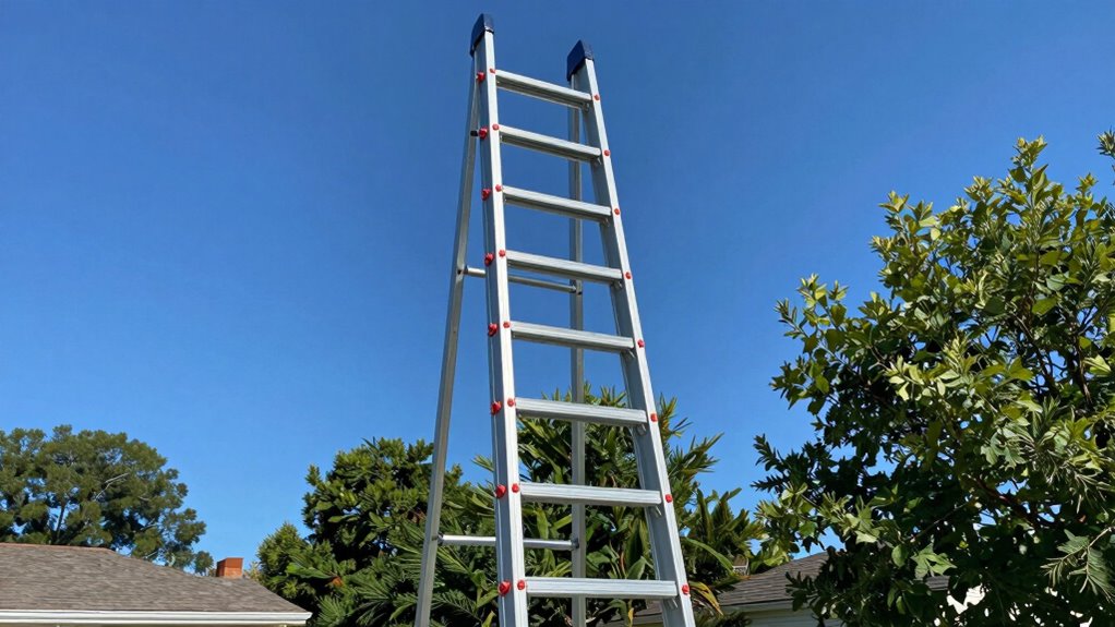 Choosing the right extension ladder for your tasks means considering how versatile it is across different jobs. A 28-foot fiberglass ladder offers great adaptability for activities like painting, gutter cleaning, and electrical work, thanks to its non-conductive nature. Features like a PRO-TOP V-shape or V-rung help it lean against various surfaces and access tight spots. Adjustable rung spacing and reliable extension mechanisms, such as QUICKLATCH or double pulleys, ensure smooth height adjustments for different tasks. Wide-flared leg levelers and bubble levels boost stability on uneven terrain, making positioning easier. Additional features like tool slots, cable hooks, or V-rungs increase functionality, letting you handle multiple professional or DIY projects efficiently. Overall, a versatile ladder adapts seamlessly to a wide range of work environments and needs.