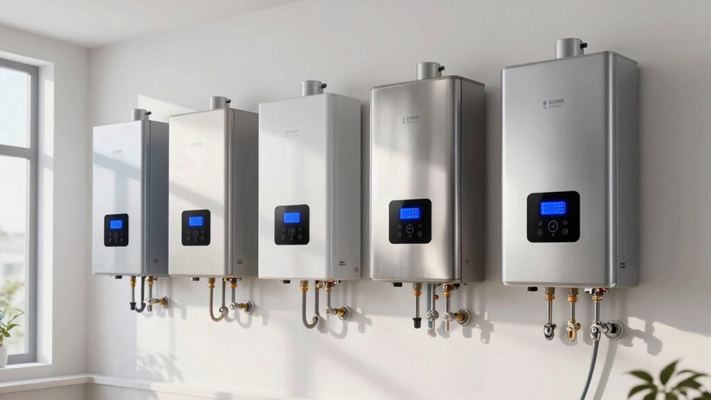 - Modern units offer high flow rates (up to 8.7 GPM) suitable for whole-house hot water needs with advanced digital and WiFi control.