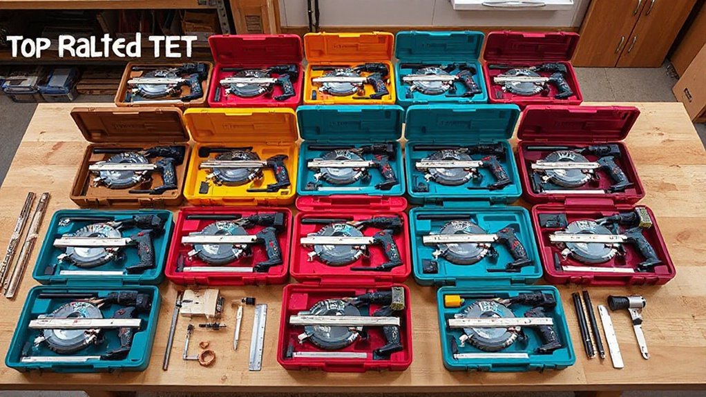 If you’re looking for the 15 best track saw kit sets for 2026, I’ve got you covered. I’ve reviewed versatile options like the Evolution Power Tools R185CCSX, cordless choices like the Makita X2 LXT, and complete bundles from WEN, Kreg, and RYOBI. Whether you need portable, professional-grade, or multi-material capabilities, there’s something for everyone. Keep going to discover detailed reviews and key features that will help you choose the perfect set.