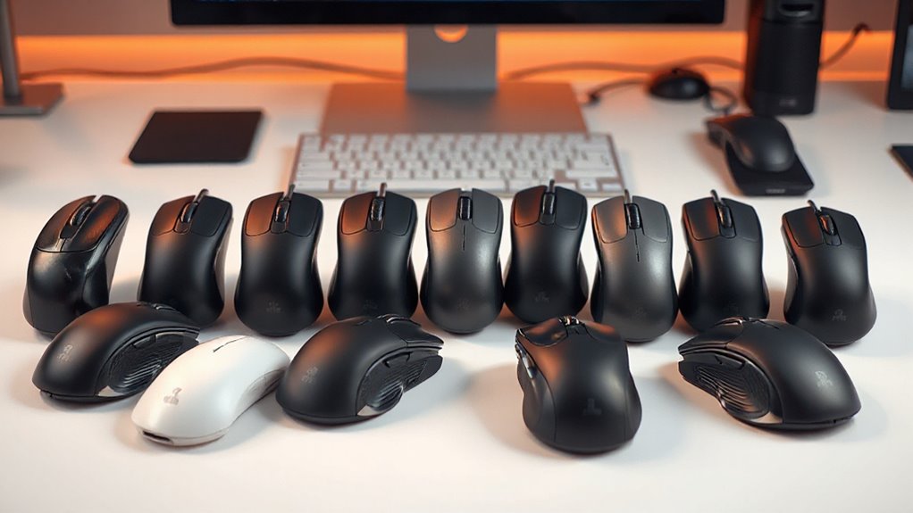 If you work in quiet environments or shared spaces, paying attention to noise levels can make a big difference in your comfort and productivity. Silent click mice, operating at under 35dB, are ideal for those who need near-silent button sounds. Some ergonomic mice even feature quiet buttons that cut noise by over 90%, helping you focus without disturbing others. Choosing a mouse with adjustable or customizable click sounds allows you to find a balance between tactile feedback and noise reduction that suits your needs. This is especially important for late-night work or concentration-heavy tasks. By prioritizing low-noise options, you can create a more comfortable workspace that minimizes distractions and respects the quiet environment you’re in.