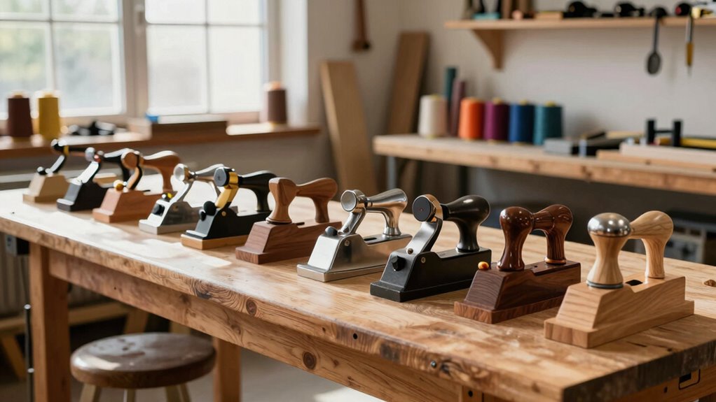 When selecting a wood lathe, size and portability are essential factors that can greatly influence your ease of use and workspace management. Compact lathes, around 13-15 inches long, are perfect for small workshops or hobbyists with limited space. Portable mini lathes, weighing between 4 to 6 pounds, make moving and storing effortless, ideal for those who need flexibility. Smaller models with a maximum workpiece diameter of 12 inches and a center length of 18 inches are great for detailed, small-scale projects. Lightweight designs, often made from aluminum alloys or reinforced plastics, boost portability without compromising stability. Picking a size that matches your workspace and project needs simplifies setup, storage, and overall operation, making your woodworking experience more enjoyable and efficient.