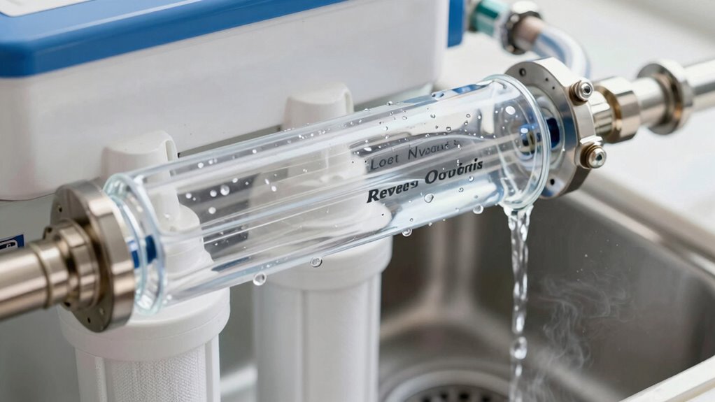 As you turn on your reverse osmosis system, imagine a delicate dance where water pushes through tiny membranes, leaving behind impurities. Though it may seem wasteful, this process acts like a vigilant filter, safeguarding your drinking water’s purity. When the quality matters most—like for sensitive plants or health concerns—the slight water loss is a small price to pay. Embrace this intricate balance, knowing you’re orchestrating a symphony of clean, invigorating water at your fingertips.