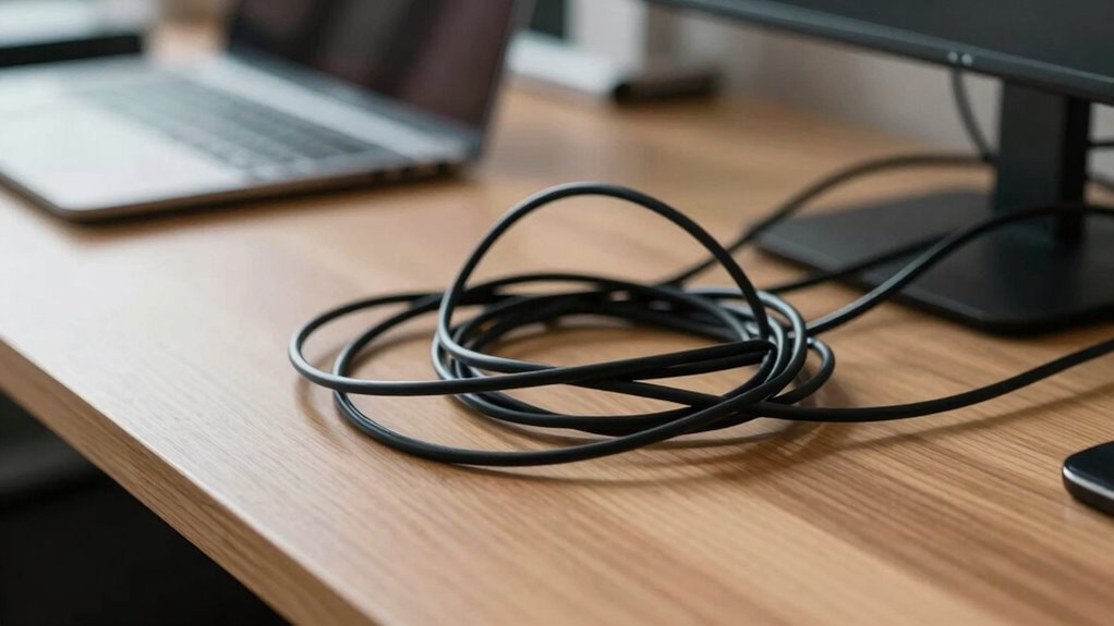 Poor cable management hampers your office productivity by causing clutter and distractions. When you use wireless solutions, you reduce the need for tangled cords, making your workspace more efficient. Proper cable concealment keeps your area tidy and minimizes tripping hazards. This streamlined setup helps you focus better, work faster, and prevents frustration caused by messy cables. Ultimately, good cable management creates a more ergonomic environment that boosts your overall office performance.