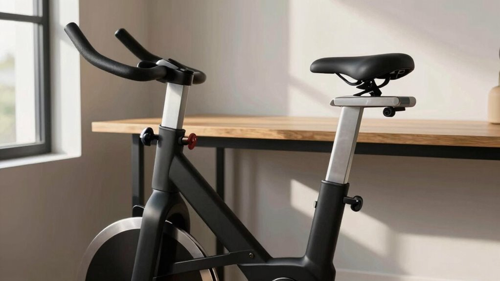 You’ll find that the desk bike height greatly impacts your comfort. By making ergonomic adjustments to the seat height, you guarantee your hips are in a natural position, reducing strain. When the seat is too high or low, it can cause discomfort and improper posture. Adjust the seat height so your hips are slightly open, allowing for better movement and support, making your workout more comfortable and effective.