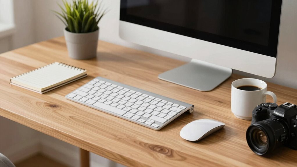 By keeping items within one reach, you cut down on unnecessary movement, saving time and keeping your focus sharp. This setup also lessens physical strain, making it easier to work comfortably all day. When you apply the “One Reach” principle, your workflow becomes smoother and more efficient. Incorporating simple organizational strategies can further enhance your desk setup and maintain a clutter-free environment.