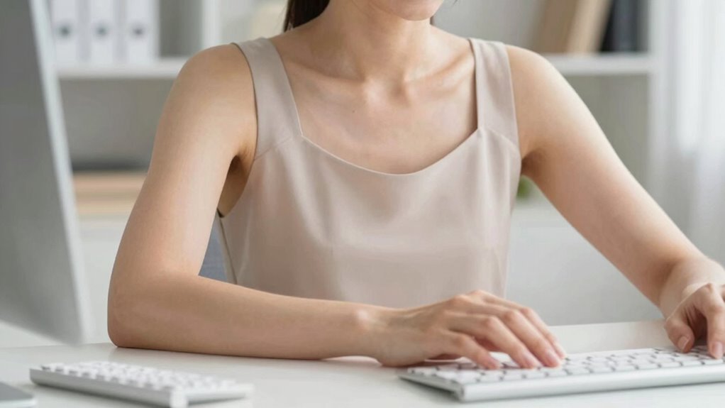 While rigid posture is often blamed for causing tension and fatigue, recent evidence suggests that it’s not necessarily harmful in itself. Maintaining a strict posture doesn’t automatically lead to muscle tension or fatigue. In fact, some degree of muscle engagement can support fatigue prevention and comfort. Problems arise when you stay in one position for too long or ignore your body’s signals. Ensuring proper posture maintenance can help distribute weight evenly and reduce unnecessary strain. Consider these points: – Rigid postures can reduce muscle tension if balanced properly – Constant movement helps prevent fatigue and discomfort – Listening to your body reduces strain and improves endurance – Flexibility in posture allows muscles to relax and recover – Proper ergonomic setup minimizes tension buildup Ultimately, it’s about balance, not rigidity, to reduce tension and avoid fatigue risks.